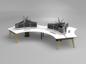 Staverton 88 – 120 Workstation – 6 Person (White Worktops + Oak Edging)
